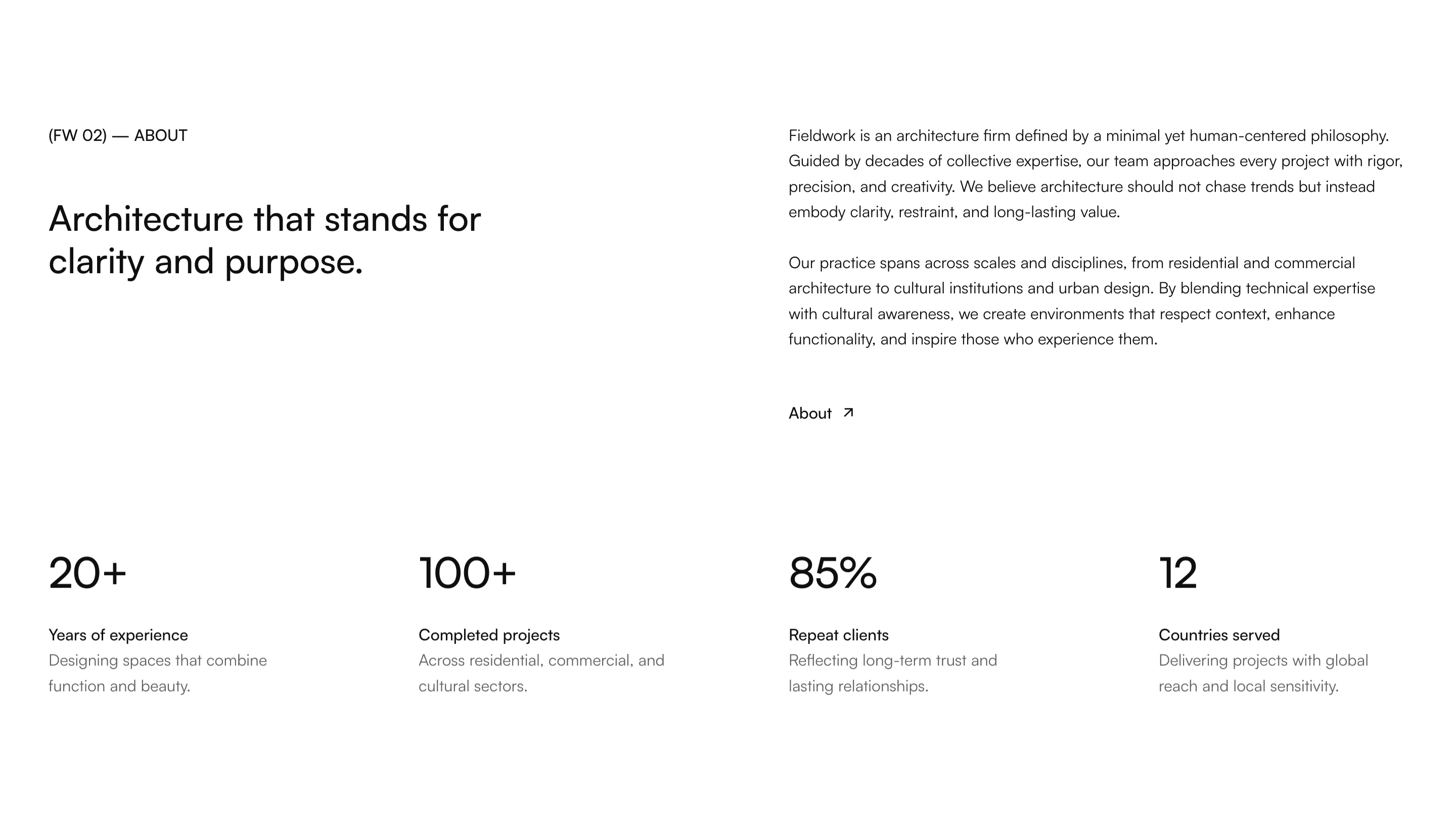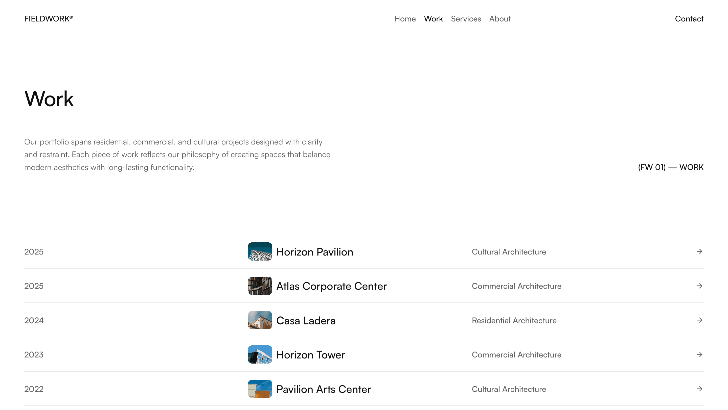 Fieldwork is a clean, minimal Framer template designed for businesses that need a clear and professional online presence. It helps you present your services, work, and story with structure while guiding visitors naturally toward making contact.